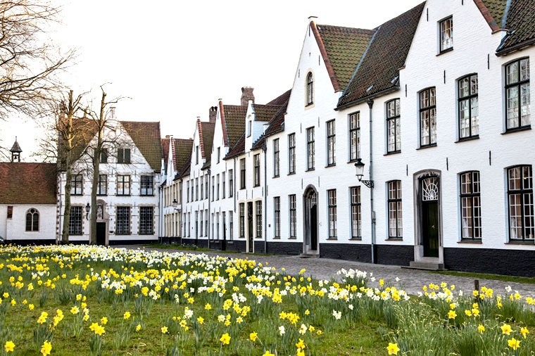 【布魯日皇家貝居安會院Begijnhof】設立於13世紀,直接隸屬於當時的法蘭西國王腓力四世,因此也被稱為皇家貝居安會院。比利時與法國的貝居安會院(又稱凡人修女院)有13座被列為世界遺產,而布魯日這座無疑是最美麗的一座。坐落在風景怡人的愛之湖邊,院內草木繁茂,白牆紅瓦,讓人感到寧靜。