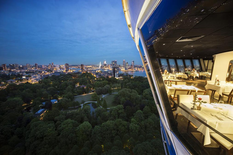 【歐洲之桅景觀餐廳Euromast】位在1960年第一屆荷蘭國際園藝博覽會的公園內,歐洲之桅是當時鹿特丹少見的建築奇觀,十年後,為了維持住「最高」的封號,又再往上加高到185公尺,至今仍是荷蘭最高的建築物,也是鹿特丹獨一無二的醒目地標。特別安排您在96公尺高的景觀餐廳用餐,能夠360度飽覽鹿特丹美麗的天際線全景。