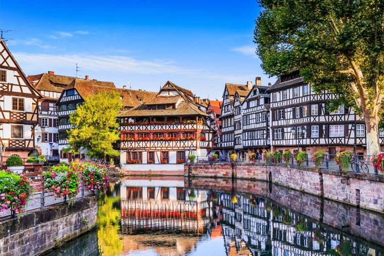 【史特拉斯堡Strasbourg】位在法德瑞三國交界的《歐洲十字路口》,從羅馬時代起就是連結北歐洲與南地中海的重要據點,為歷史上的多事之地。為了平息自古以來的恩恩怨怨,1979年歐洲議會以史特拉斯堡作為集會地,從此它便被冠上《歐洲首都》之名。老城內最知名的就屬小法國區,伊爾河畔矗立著被紅花綴滿的木質結構建築木造屋和露天餐廳,彷若走進中世紀的童話世界。