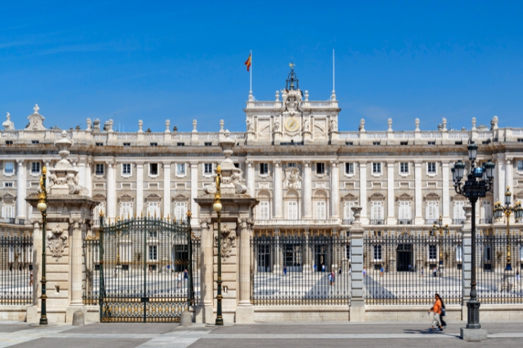 馬德里皇宮的外觀融合新古典主義及文藝復興的風格,內部則是洛可可式的華麗裝潢,奢華程度均令人不禁發出驚嘆之聲!皇宮在1931年前一直是歷代國王執政與居住的地方,而現在的西班牙國王與其王室並不居住在這裡,而是住在馬德里郊外較小的薩爾蘇埃拉宮,如今的皇宮則成為招待各國貴賓與舉辦典禮的場所。皇宮內共有20間的展覽室,其中最為重要的是王座室展覽室,這裡可是歷代國王接見外來貴賓的殿堂,而國王的寶座四周安置著四隻銅獅,大廳的天花板更有提耶波洛的濕壁畫,充滿著洛可可式風味金碧輝煌的豪華氣息。此外,其他如宴會廳、查理三世之臥房等,也是不可錯過的重點喔!