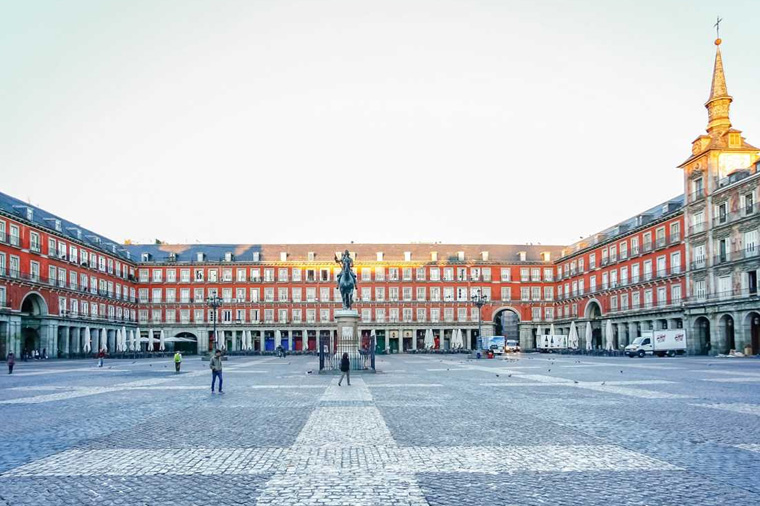 於1619年建立完成,四周被四層樓建築圍繞,具有獨特風格。過去曾經遭遇過三次大火,現在的樣貌是於1953年後修建完成~以往廣場多用來舉辦鬥牛、皇室儀式或是宗教審判的火刑場,現在則多為露天餐廳和咖啡館的座位,並且成為觀光客並經之地。