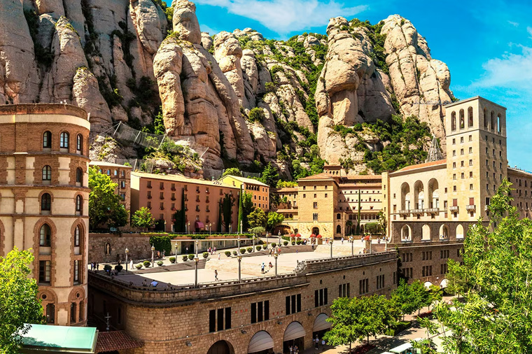 蒙塞拉特修道院是位於西班牙加泰隆尼亞中部山峰蒙塞拉特山的本篤會修道院,在巴塞隆納以西48公里,可透過公路、鐵路或纜車到達。相傳西元880年時某一天,山上的一群牧童看見神光降臨、伴著天籟,驚奇之餘回家告訴父母,大人隨即上山,也看到如此奇景,這一個神蹟馬上就被傳了出去,一位主教也因此上山探個究竟,並且在一個山洞裡發現了一尊木質的聖母像,主教本想把聖母像抬下山,但是一群人卻發現聖母像沉重的抬不起來,主教直覺聖母像想留在山上,所以下令在山上蓋了一座小教堂來供奉聖母。西元1025年時鋸齒山上的夢瑟拉修道院正式成立,12世紀時重新按照山洞裡的聖母像再雕一尊,供俸在夢瑟拉修道院,鋸齒山也因此自中世紀就成為聖山,此修道院可說是全加泰隆尼亞人精神依靠,也是西班牙人們的朝聖之地。