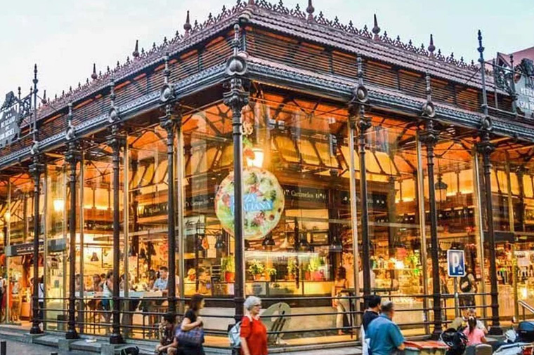 是馬德里當地市集,位在市中心交通方便,市場規劃完善又美又乾淨,還能用親切的價位一次收集到 Tapas、燉飯、伊比利火腿、海鮮、Sangria 等道地西班牙美食。