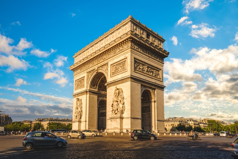 【巴黎凱旋門下車參觀】凱旋門位於法國巴黎的戴高樂廣場中央,香榭麗舍大道的西端。是拿破崙為紀念1805年打敗俄奧聯軍的勝利,於1806年下令修建,於1836年完工,高50米、寬45米,是當時世界上最大的凱旋門。它由四個雕塑群組成,分別代表戰爭、和平、抗拒和勝利。在拱門上方,還有一座雕塑《戰爭出征》,生動描繪了戰爭的場景。香榭麗舍大道是巴黎最著名的大道,從凱旋門一直延伸到羅浮宮,是巴黎最繁華的商業街之一。凱旋門正好位於這條大道的終點,成為了這條大道的完美標誌。