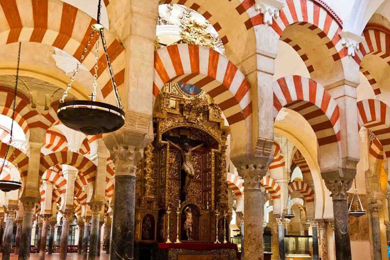 哥多華清真寺,又名哥多華聖母升天主教座堂。該建築為世界遺產哥多華歷史中心的一部分,最早建於786年。1238年收復失地運動後,將清真寺改為羅馬天主教的主教座堂。16世紀時西班牙人在這座象徵穆斯林建築的中心,開始修建文藝復興風格的聖殿。哥多華大清真寺是摩爾人建築中完成度最高、最傑出的作品之一。也是哥多華最重要的地標,與格拉納達的阿爾罕布拉宮同為安達盧西亞建築的代表。這座清真寺以寺內紅白色雙層拱門最為著名,850根大理石柱,大理石圓柱裝飾而成。既有傳統回教建築的雕刻,又融合天主教的壁畫與雕刻,令人讚嘆。(若遇宗教活動關閉,則退每人10歐,不便之處‧請見諒)