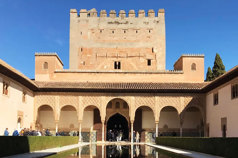 格拉納達,璀璨精緻的回教文化在此展露無遺,略帶憂鬱的精緻美感及絕代風華,譜出一首首令人詠嘆不絕的輓歌;阿爾罕布拉皇宮建於蒼木蓊鬱的山巒之上,是阿拉伯人統治西班牙的證物」,在「黃金時代」所遺留下之產物建造於12、13世紀,在阿拉伯文的意思為「紅宮精緻細膩的建築、清新脫俗的格調,驚世之美令人讚賞,夏宮-天堂中的花園,彎形噴泉終年不斷,一年四季,青青、綠綠、紅紅、紫紫,宛若眾神花園一般,風采永遠不褪!