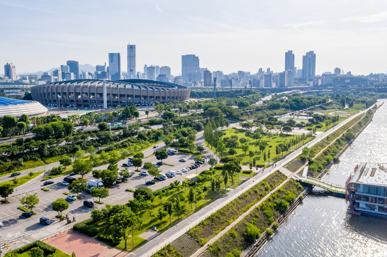 【蠶室漢江公園】近樂天公園的漢江邊休息空間。除了有蠶室漢江游泳池,還有蠶室自然學習場可以觀察各種水生植物和魚類。另有排球場、兒童遊樂場和步道等,可以在蠶室大橋上設置的觀景休息。