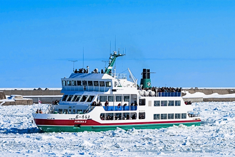 【破冰船】每年約1月中旬至3月下旬開航,巡航於被冰所覆蓋著的鄂霍次克海上。無懼於厚達1m的冰層,巡洋船將層層的冰打碎後前進,氣勢十足。如果站在甲板上更是充滿臨場感。在全世界最南端的流冰世界裡,也許您可以看到在流冰上進行日光浴的海豹,或是遇到振翅高飛的白尾鷲或大鷲等。建議您不妨帶著望眼鏡前來觀賞。