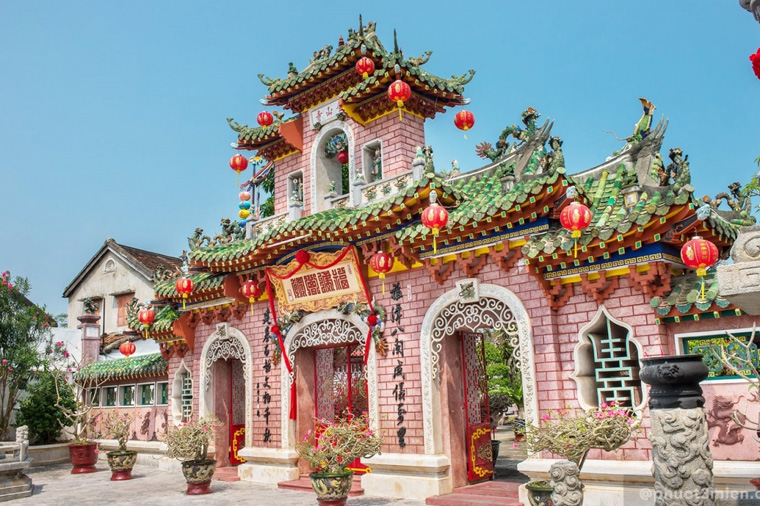 【福建會館】 為族群集會所建,之後成為供奉媽祖的寺廟。在此可以看看精巧的璧飾、雕像身上紅色及綠色的外表、中國帆船的複品,會 館內供奉媽祖祈求庇佑當地人民平安,在會安是古街裡最有魅力的旅遊點。