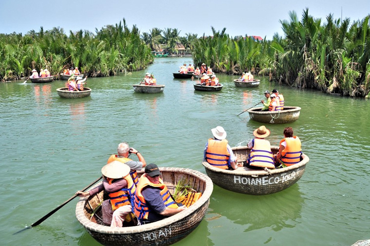 【迦南島-體驗竹桶船之旅+樂釣螃蟹趣】專車前往會安碼頭搭乘船隻前往對岸迦南島,迦南島位於會安對岸,於會安碼頭搭乘船隻約30分鐘之船程,會安秋盆河一條發源於寮國與越南邊境地帶橫穿越南的河流,河邊水鄉景色美不勝收。秋盆河會安這側商鋪林立;對岸也就是迦南島還尚未開發,是一片相對原始的自然生態風光,岸上密布著水椰林、檳榔樹,島上居民大多以捕魚及木雕維生。就讓我們體驗搭乘傳統竹桶船,穿越原始自然生態風光,及體驗樂釣螃蟹趣。午餐享用花蟹火鍋螃蟹,餐後前往附有中國文化色彩濃厚的古埠。