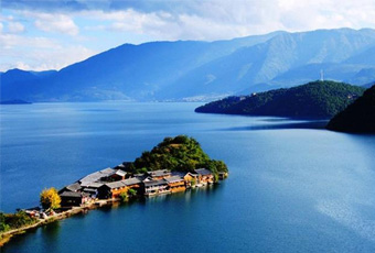 【瀘沽湖】位於雲南寧蒗和四川鹽源兩縣交界的萬山叢中,面積為52平方千公尺,平均水深45公尺,最深達93公尺,透明度高達11公尺,湖中 有五個全島、三個半島,形態各異,四周青山環繞,山勢蜿蜒起伏,植被茂密,色彩碧翠,湖水清澈透明;格姆女神山(獅子山)在湖北姿容端莊,而緩緩滑行在碧波中的豬槽船和徐徐飄浮于天水之間的摩梭民歌,使其更增添 幾分古樸、幾分寧靜,是一個遠遠離塵市,未被污染的處女湖。