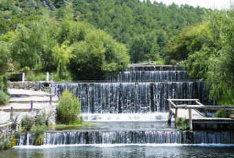 【玉水寨】參觀,玉水寨是纳西族中部地區的東巴聖地,是麗江古城的溯源。玉水寨東巴文化傳承基地保留了纳西族傳統古樸的風貌,真正體現了“人與自然和諧發展”這一纳西族傳統理念,東巴文化之真諦。現景區内有三位著名的東巴大師主持日常事務,有數名東巴學生,在玉水寨學習東巴經文、東巴舞蹈、東巴祭祀儀典、東巴藝術等。