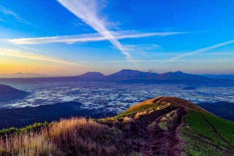 【大觀峰展望台】阿蘇地區最知名的觀景台之一,能一覽擁有廣闊田野的阿蘇地區、阿蘇五岳以及久住連峰,後由著名作家德富蘇峰將此山命名為大觀峰。從這裡望見的阿蘇五岳狀似釋迦牟尼佛的臥姿,因此阿蘇五岳還有「涅槃像」的別稱。