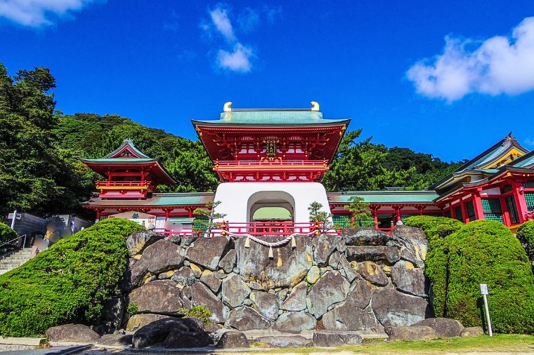 整座神社建築以鮮豔的朱紅色為主體,外觀宛如一座海上宮殿,極具視覺震撼力,主祭日本歷史上年紀最小的天皇「安德天皇」。除了主殿之外,神宮內也可參觀「無耳芳一堂」,是喜愛歷史與文化旅客的必訪之地。走在海風輕拂的神社步道,除了感受歷史的餘韻,也能飽覽關門海峽的壯麗景色。