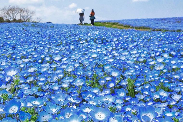在櫻花季時,約有1600棵櫻花樹盛開,特別是染井吉野櫻和大島櫻,沿著自行車道形成美麗的櫻花隧道,讓人彷彿走入童話世界。 此外,公園內的花之丘還會同時綻放約150萬株粉蝶花,藍色花海與櫻花相互輝映,形成獨特的視覺饗宴。