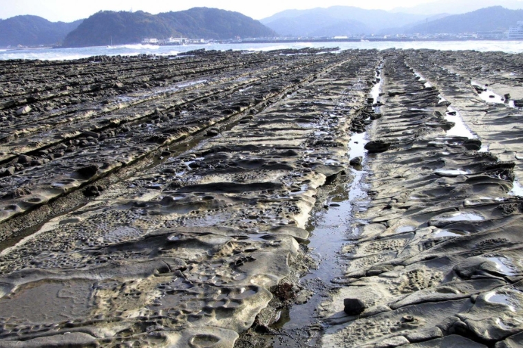 被日本國家指定的天然紀念物,青島綿延至巾著島約8公里的海岸,當退潮時,即會出現一片波浪的奇岩。這一片波狀奇岩連綿不絕的神秘景觀是青島周邊最著名的景點,這一處奇景是由約3000~1500萬年前海底累積的砂岩及泥岩地層隆起,再持續受到海浪的侵襲而形成的。