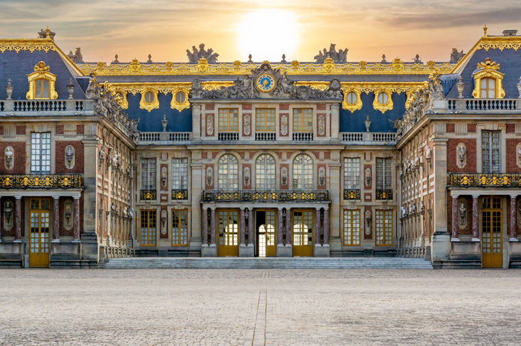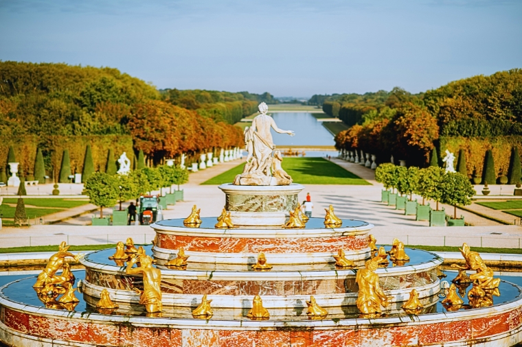 【凡爾賽宮<入內參觀>】凡爾賽宮所在地區原來是一片森林和沼澤荒地。1624 年,法國國王路易十三在這裡修建了一座二層的紅磚樓房,用作狩獵行宮。1660 年,法國國王路易十四決定將王室宮廷遷出混亂喧鬧的巴黎城。經過考察和權衡,他決定以路易十三在凡爾賽的狩獵行宮為基礎建造新宮殿。原行宮的東立面被保留下來作為主要入口,修建了大理石庭院。凡爾賽宮主體部分的建築工程於 1688 年完工,而整個宮殿和花園的建設直至 1710 年才全部完成,隨即成為歐洲最大、最雄偉、最豪華的宮殿建築,並成為法國乃至歐洲的貴族活動中心、藝術中心和文化時尚的發源地。