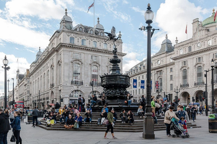 【皮卡迪利圓環<下車參觀>】 倫敦華埠「皮卡迪利圓環」,倫敦最有名的圓形廣場,興建於1819年,早期是英國零售商店所在地,今日為英國倫敦市中心購物街道的圓心點,有五條主要道路交錯於此。攝政街是倫敦人愛來的購物聖地。