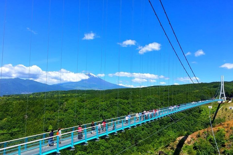 是日本本州最長的人行吊橋,全長400公尺。從橋上可遠眺富士山與駿河灣美景,景色壯麗迷人。橋面略帶搖晃,增添刺激感。周邊設有咖啡廳、花園步道及高空滑索等設施,無論賞景、拍照或體驗活動,都非常適合情侶與家庭前來遊玩。