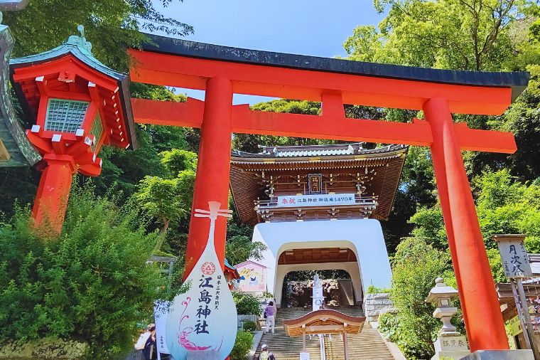 是鐮倉西面的一個小島,與鐮倉之間有一座長 400 公尺長的橋。長期以來,這裡都是東京人一日遊的熱門目的地。尤其是在江戶時代(1603-1867年),很多歌舞伎藝人等娛樂從業者都喜歡到這裡遊玩。如今,江之島成為了一座融合傳統與現代的繁華島嶼,商店、旅館和餐廳隨處可見,觀光景點也多不勝數。