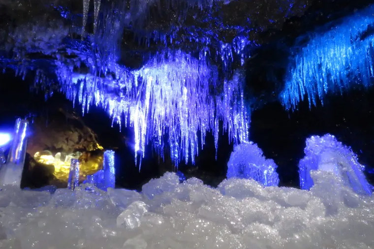 富士山西北翼的長尾山劇烈噴發因此形成這座冰穴,是一個冰凍的地下世界,位於富士山山麓青木原的中心,即使是盛夏時節,也請務必穿上保暖的衣物。