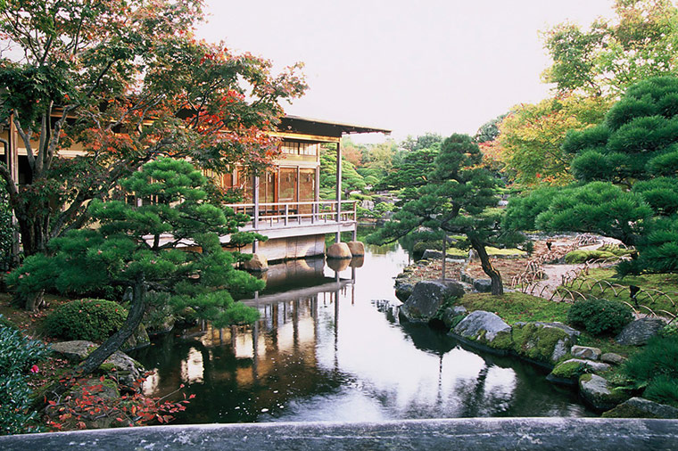 【岡山後樂園】已被列聯合國教科文組織的世界文化遺跡日本三大名園之一的觀光名所,後樂園與金澤『兼六園』、水戶『偕樂園』並稱日本三大名園。佔地十三萬平方公尺,為江戶時代岡山藩主池田綱政花費14年的時間於1700年完成,採借景法之池泉迴遊式庭園,整體的設計不僅只於鑑賞的功能也有修身、待客、武術鍛鍊等用途,庭中有田園、茶田、梅林等,而庭園中心的澤之池可眺望備前富士以及岡山城,視野堪稱一絕。
