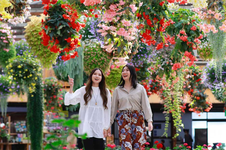 【鳥取花迴廊】日本最大級別的花卉主題公園之一,在園區內可以將日本名山“大山”的雄偉壯麗盡收眼底。花卉區外圍有一圈長達1公里的環形屋簷迴廊。踏上迴廊,在鮮花簇擁、綠葉環繞間悠閒漫步,可以欣賞到各種花卉奼紫嫣紅、爭妍鬥艷。整個園區面積達50公頃。