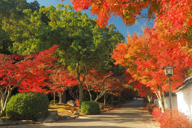 【紅葉谷公園】是代表宮島的紅葉景點之一。每年從11月中旬到下旬進入賞楓季節,園內有多達700多株樹木轉為絢麗的色彩。樹木品種最多的是變為火紅色的伊波呂楓樹,約有560株,其次是以大型葉片為特色的大楓樹約100株,其他還有約40株的瓜膚楓和山楓。